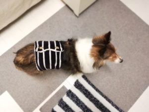 まずは、興味津々だった腹巻きをしてご機嫌なご様子。