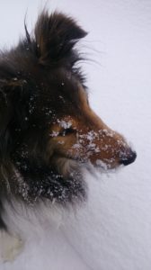 顔が雪まみれになるので、散歩の途中で何度も雪を払っていました。